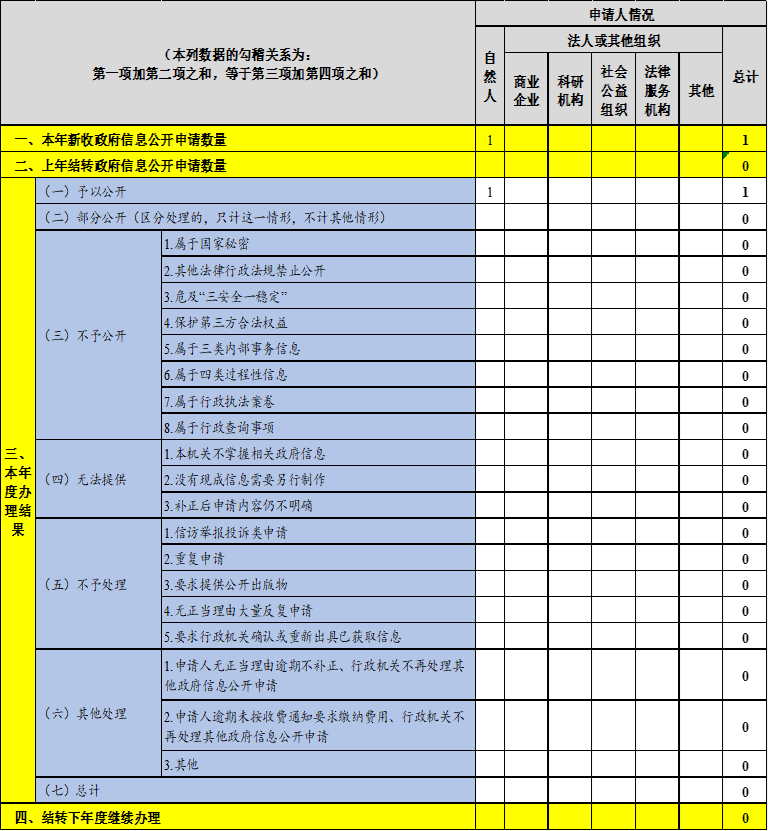 三、收到和处理政府信息公开申请情况