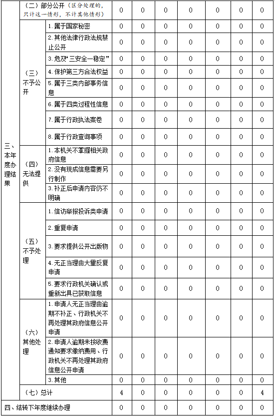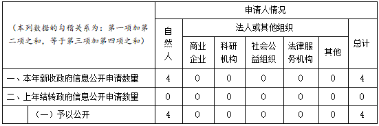 (三)优化依申请办理,提高服务效能。严格执行《中华人民共和国政府信息公开条例》及相关制度,优化依申请公开办理流程,提升办理质量和效率。畅通线上线下申请渠道,增强工作的预见性和主动性。规范申请登记、审核办理、答复送达和归档管理等环节,健全制度机制,确保答复内容依法合规、程序严谨。全年共办理依申请公开信息4件。